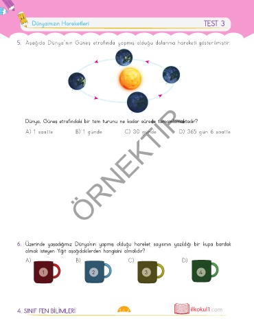 6. Üzerinde yaşadığımız Dünya’nın yapmış olduğu hareket sayısının yazıldığı bir kupa bardak