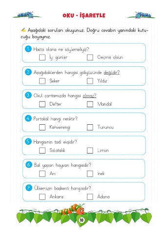 Aşağıdaki soruları okuyunuz. Doğru cevabın yanındaki kutu-