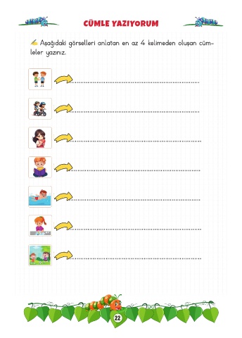 Aşağıdaki görselleri anlatan en az 4 kelimeden oluşan cüm-