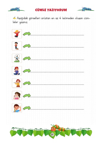 Aşağıdaki görselleri anlatan en az 4 kelimeden oluşan cüm-