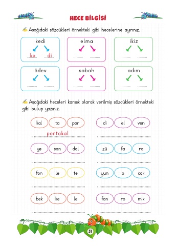 Aşağıdaki sözcükleri örnekteki gibi hecelerine ayırınız.