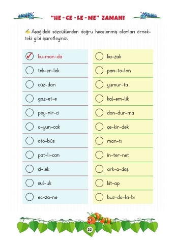 Aşağıdaki sözcüklerden doğru hecelenmiş olanları örnek-