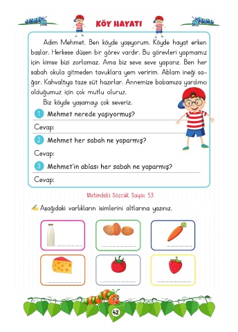 Adım Mehmet. Ben köyde yaşıyorum. Köyde hayat erken