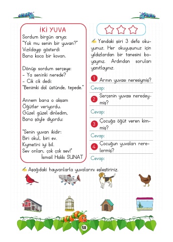 Aşağıdaki hayvanlarla yuvalarını eşleştiriniz.