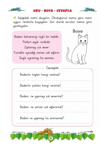 uygun renklerle boyayalım. Son olarak soruları metne göre