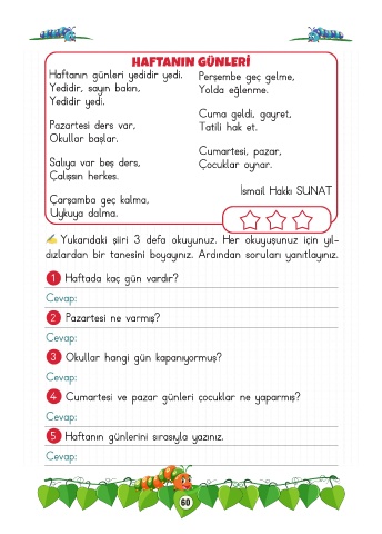 Yukarıdaki şiiri 3 defa okuyunuz. Her okuyuşunuz için yıl-