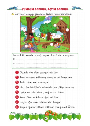Cümleleri okuyup görseldeki kişileri numaralandırınız.