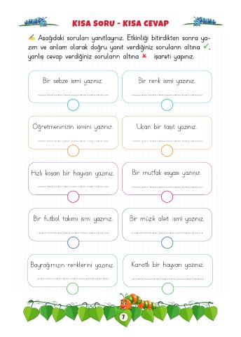 Bir sebze ismi yazınız. Bir renk ismi yazınız.