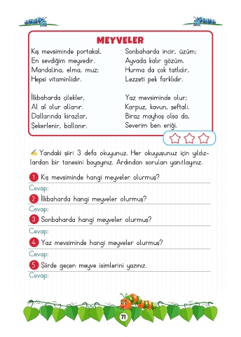 Yandaki şiiri 3 defa okuyunuz. Her okuyuşunuz için yıldız-