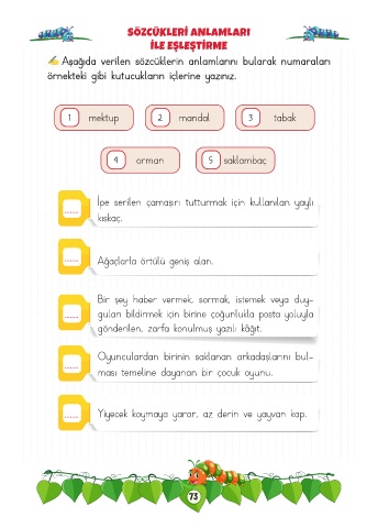 Aşağıda verilen sözcüklerin anlamlarını bularak numaraları