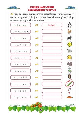 oluşturup yazınız. Bulduğunuz sözcüklere ait olan görseli bulup