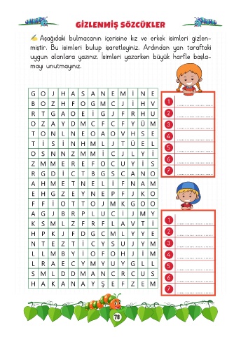 miştir. Bu isimleri bulup işaretleyiniz. Ardından yan taraftaki