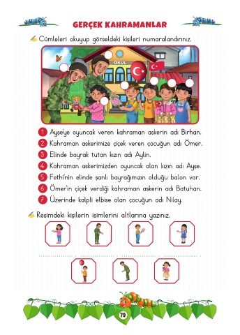 Cümleleri okuyup görseldeki kişileri numaralandırınız.