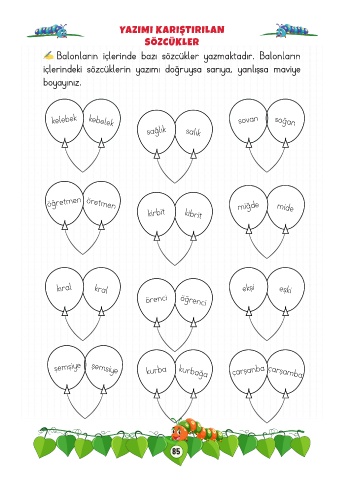 Balonların içlerinde bazı sözcükler yazmaktadır. Balonların