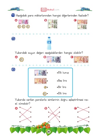 4 Aşağıdaki para miktarlarından hangisi diğerlerinden fazladır?