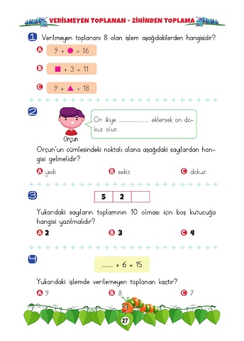 1 Verilmeyen toplananı 8 olan işlem aşağıdakilerden hangisidir?