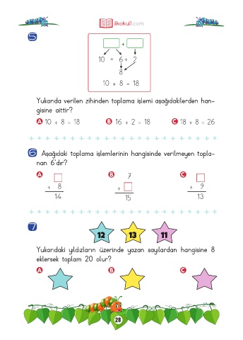 6 Aşağıdaki toplama işlemlerinin hangisinde verilmeyen topla-