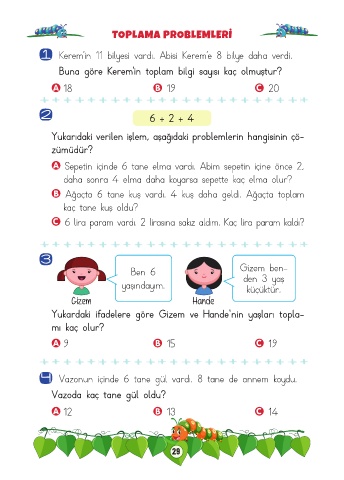 Yukardaki ifadelere göre Gizem ve Hande'nin yaşları topla-