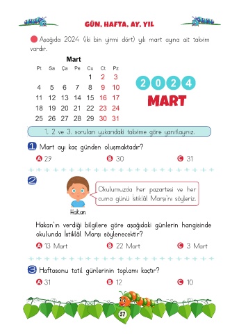 1, 2 ve 3. soruları yukarıdaki takvime göre yanıtlayınız.