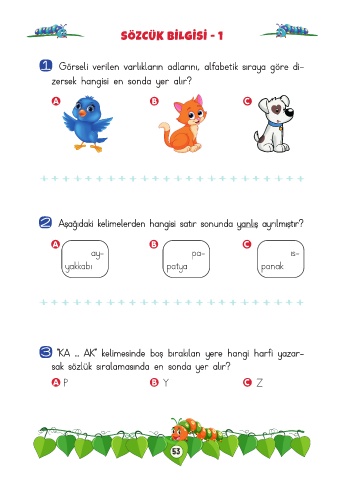 2 Aşağıdaki kelimelerden hangisi satır sonunda yanlış ayrılmıştır?