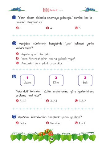 5 Aşağıdaki cümlelerin hangisinde “yarın” kelimesi yanlış