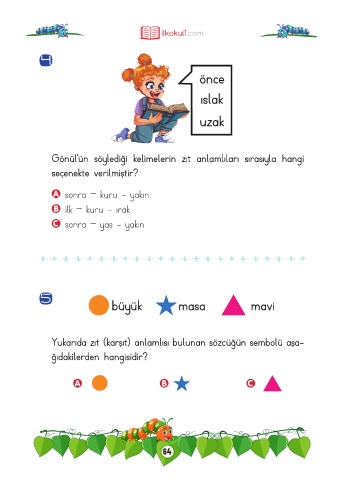 Gönül’ün söylediği kelimelerin zıt anlamlıları sırasıyla hangi