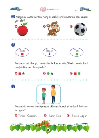 A Tembel-Çalışkan B Uzun-Kısa C Neşeli-Üzgün