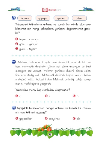 5 Aşağıdaki kelimelerden hangisi anlamlı ve kurallı bir cümle-