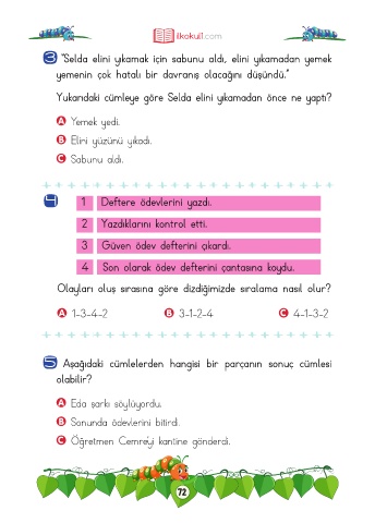 3 ‘’Selda elini yıkamak için sabunu aldı, elini yıkamadan yemek
