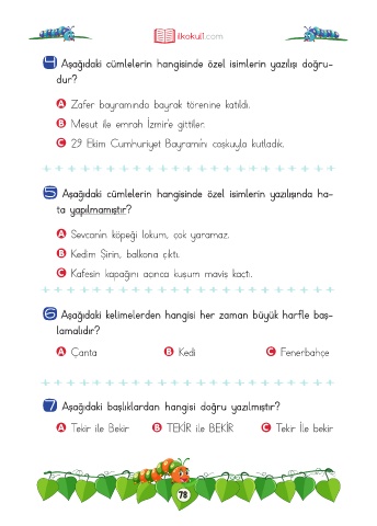 4 Aşağıdaki cümlelerin hangisinde özel isimlerin yazılışı doğru-