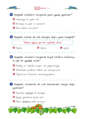 4 Aşağıdaki cümlelerin hangisinde yazım yanlışı yapılmıştır?