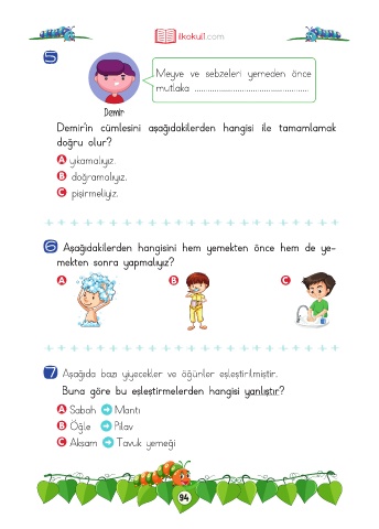 6 Aşağıdakilerden hangisini hem yemekten önce hem de ye-