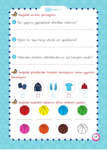 Aşağıdaki basketbol toplarının altına renklerini yazalım.