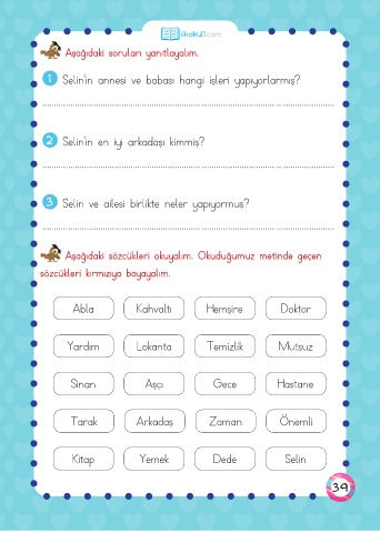 Aşağıdaki sözcükleri okuyalım. Okuduğumuz metinde geçen