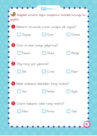 Aşağıdaki soruların doğru cevaplarının önündeki kutucuğu bo-
