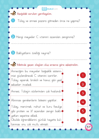 Metinde geçen olayları oluş sırasına göre eşleştirelim.