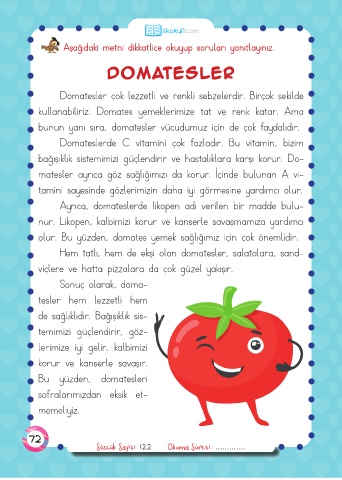 olur. Bu yüzden, domates yemek sağlığımız için çok önemlidir.