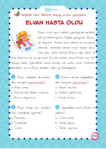 b. Vücudunda lekeler oluşmuş. b. Doktora götürmüş.