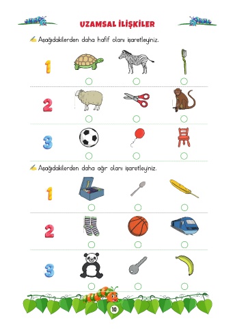 UZAMSAL İLİŞKİLER Aşağıdakilerden daha hafif olanı işaretleyiniz. Aşağıdakilerden daha ağır olanı işaretleyiniz. 10
