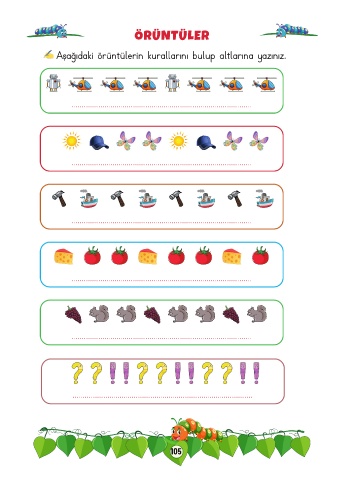 Aşağıdaki örüntülerin kurallarını bulup altlarına yazınız.