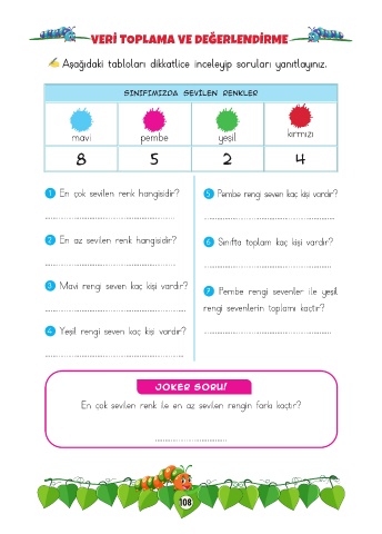 1 En çok sevilen renk hangisidir? 5 Pembe rengi seven kaç kişi vardır?