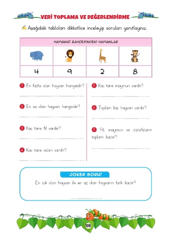 1 En fazla olan hayvan hangisidir? 5 Kaç tane maymun vardır?