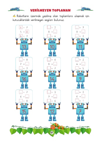 Robotların üzerinde yazılmış olan toplamlara ulaşmak için