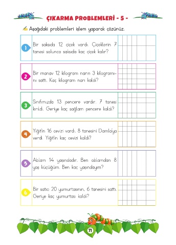 Aşağıdaki problemleri işlem yaparak çözünüz.