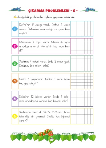 Seda’nın 7 şekeri vardı. Seda 2 şeker yedi.