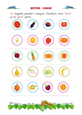 BÜTÜN - YARIM Aşağıdaki görselleri inceleyiniz. Görsellerin altına “bütün” ya da “yarım” yazınız. 81