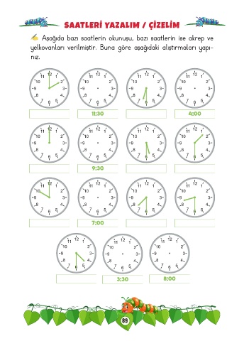 Aşağıda bazı saatlerin okunuşu, bazı saatlerin ise akrep ve