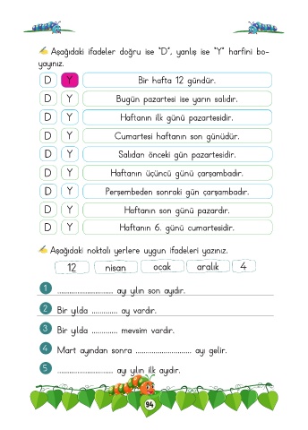 Aşağıdaki ifadeler doğru ise “D”, yanlış ise “Y” harfini bo-