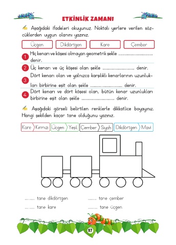 Kare Kırmızı Üçgen Yeşil Çember Siyah Dikdörtgen Mavi
