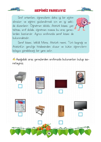 Aşağıdaki araç gereçlerden sınıfımızda bulunanları bulup işa-